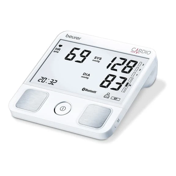 The Beurer BM 93 Bluetooth arm blood pressure monitor measures your blood pressure using inflation technology and also your heart rate. You can send your data to your mobile device via Bluetooth if you have downloaded the Health Manager application. The ultra-flat design, the touch button and the illuminated LCD screen are a perfect combination of design and state-of-the-art technology. In addition, it is equipped with a finger ECG sensor, so that it not only measures the blood pressure, but also creates an electrocardiogram.
