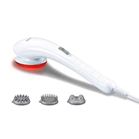 Infrared massager Beurer MG 21 that provides an infrared heat massage with three types of massage adapters.
