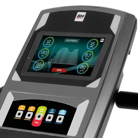 – Touch&Fun Technology: Increase fun during workouts with connectivity and special features: internet, TV, videos, etc. all available in BH’s fully customizable software- M10TFT monitor: Get the most out of your workouts with built-in speakers, fan, 12 preset programmes and 24 intensity levels. All controlled from its 72′ touch screen