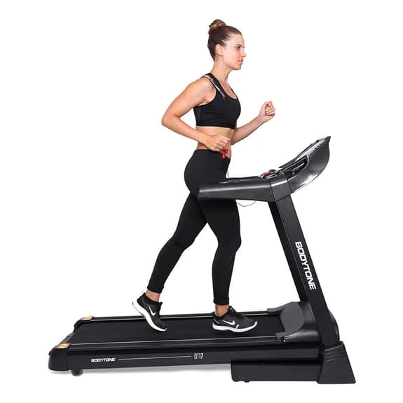 The Bodytone DT17+ treadmill has a wide range of features that will maximize your workout thanks to the engineering of our professional treadmills. DT17 is the treadmill that best combines maximum benefits with an attractive design. Maximise your training sessions and enjoy all the benefits. With the REACT technology incorporated, the platform reduces stress on the joints by cushioning the impact of each stride. The unique orthopedic running strap is made of dense, adherent material offering total comfort and stability for running.