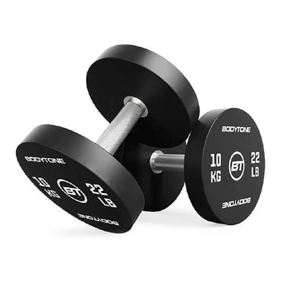 The Bodytone 12.5 kg urethane dumbbells have been specifically designed to accommodate free weight use in fitness rooms. These dumbbells are made of high quality steel and a urethane coating to attenuate the impact of the dumbbells against supports, floors, and even against the athlete himself, so as to increase comfort during use.