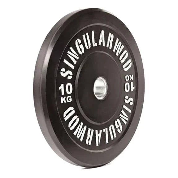 The Singular WOD 10 kg Disc is made of high-quality virgin rubber, with a hardness on the Shore (A) scale of 88, which absorbs much of the impact, and has a highly shock-resistant, zinc-plated steel collar, which provides great durability even in wet conditions and when in contact with sweat or magnesium. Its 450 mm diameter complies with the International Weightlifting Federation standard and has a weight tolerance of +-1 %.