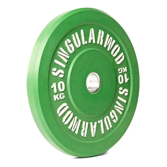 The Singular WOD 10 kg Disc is made of high-quality virgin rubber, with a hardness on the Shore (A) scale of 88, which absorbs much of the impact, and has a highly shock-resistant, zinc-plated steel collar, which provides great durability even in wet conditions and when in contact with sweat or magnesium. Its 450 mm diameter complies with the International Weightlifting Federation standard and has a weight tolerance of +-1 %.