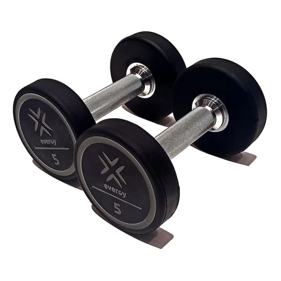 Evergy Fitness Elite 2.5 kg dumbbells are made of high quality natural rubber, which allows for intensive and prolonged use. Its ergonomic grip prevents the dumbbell from moving in your hand while you are exercising. The weight of the dumbbell is visually represented on the side.