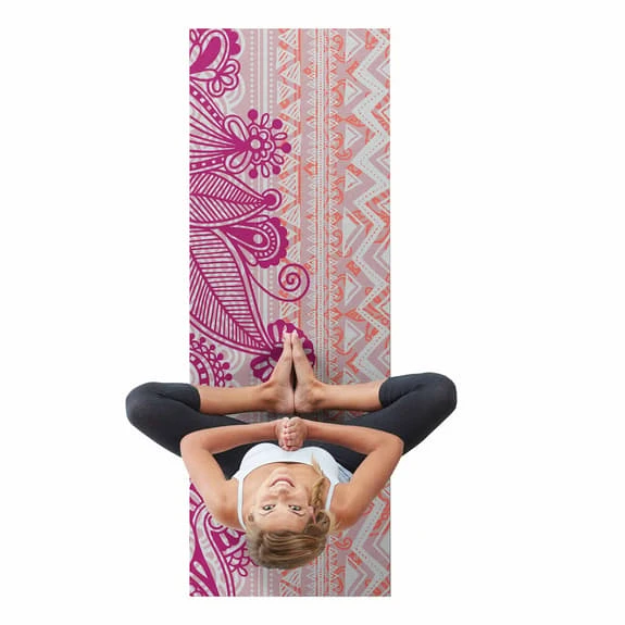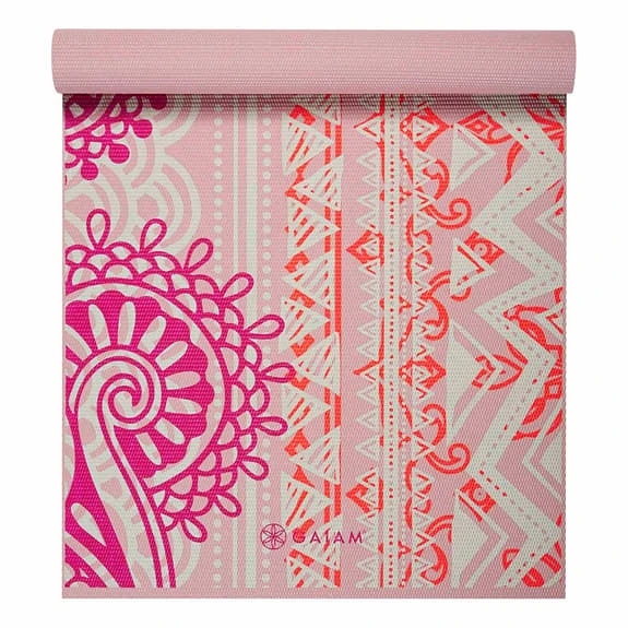 The Gaiam Classic Bohemian Rose 4mm mat has been designed for meditation and yoga. It features a bohemian design ideal for relaxing. With a thickness of 4mm, this mat is comfortable, lightweight and portable. The textured surface keeps you stable in the exercises you do. This mat is phthalate-free.