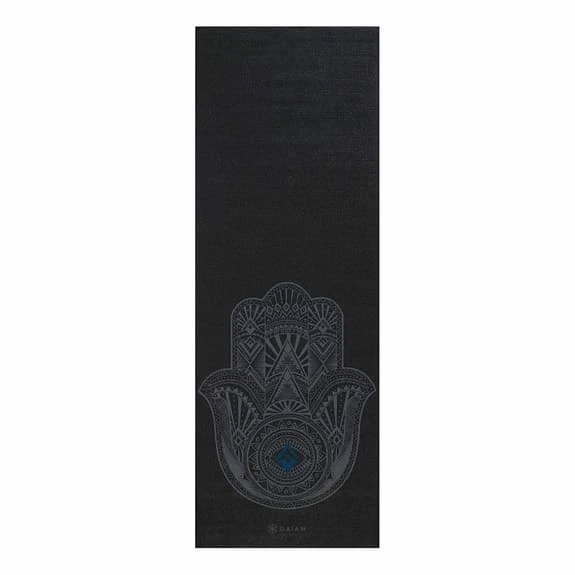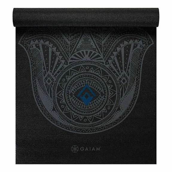 The Gaiam Fatima Hand Yoga 4mm mat is designed for meditation and yoga. It features a classic and original design by Fatima that helps you relax without distractions. With a thickness of 4mm, this mat is comfortable, lightweight and portable. The textured surface keeps you stable in the exercises you do. This mat is phthalate-free.