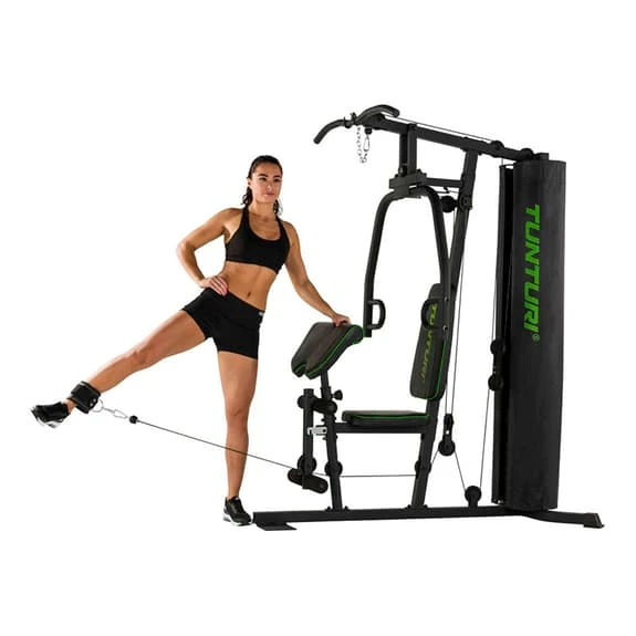 The Tunturi HG20 Home Gym multistation has been designed with a folding format to occupy as little space as possible when not in use, while the stack is covered to add security.