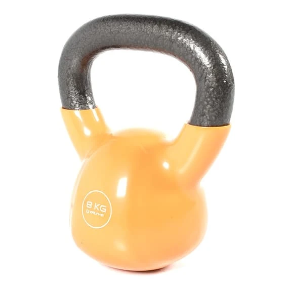 The O’LIVE 4 kg kettlebell has a vinyl cover provides additional protection with a less aggressive design. For these reasons vinyl kettlebells are commonly used in supervised classes.