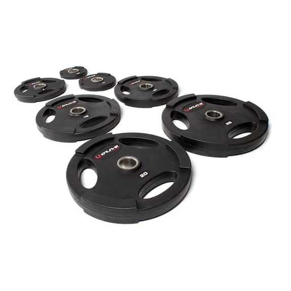 O’LIVE rubber covered Olympic Disc with three grips for easy and safe handling. The rubber protects the disc, the supports and the floor, while being more pleasant to the touch and to the eye. The design integrates spacers that allow the user to put their fingers under the plate to allow them to be picked up from the floor and separated when on the bar. The inner hole is the Olympic standard 50 mm and is protected by a steel ring that allows a smooth rotation in the bar. The coloured relief makes it easy to quickly identify the weight.