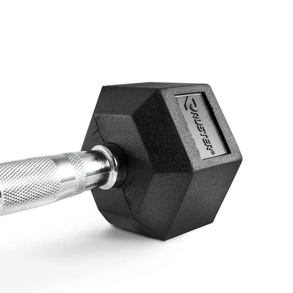 The Ruster hexagonal 4 kg dumbbells have an ergonomic, knurled chrome-plated steel handle, which provides a secure comfortable grip. Their compact rubber lining is shock-resistant for durability and protection, while their hexagonal design prevents dumbbell from rolling. Dumbbells can be used to tone muscles, develop core strength and strengthen joints.
