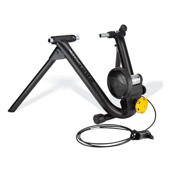 The Saris Mag+ turbo trainer features a gear lever mounted on the handlebars to easily change the resistance in the middle of training.