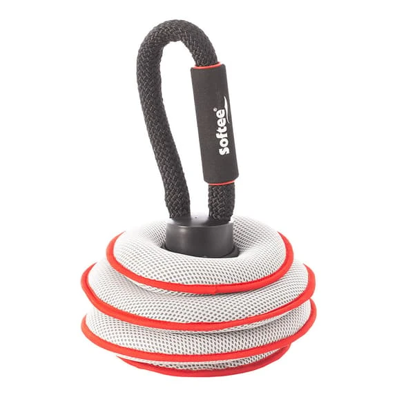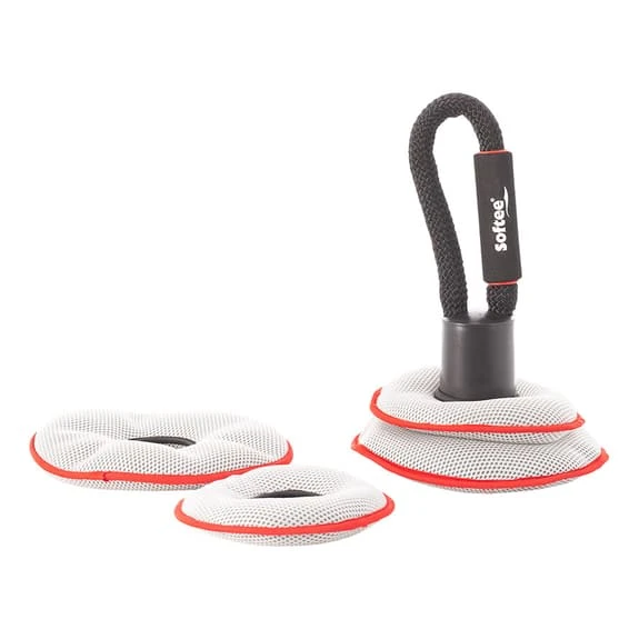 The Softee adjustable kettlebell has a set composed of a main structure with foam grip and four rings (2 of 1.5 kg. + 2 of 2.5 kg.).
