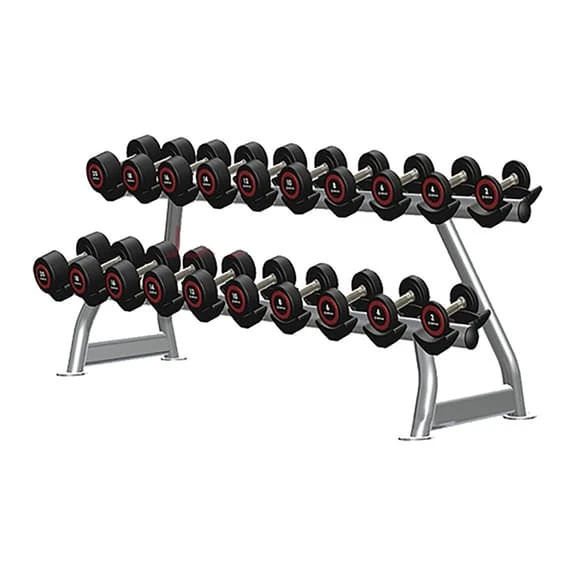 The Softee Modern 20-dumbbell storage has two heights to accommodate up to 20 dumbbells. The supports are correctly aligned to ensure total stability.