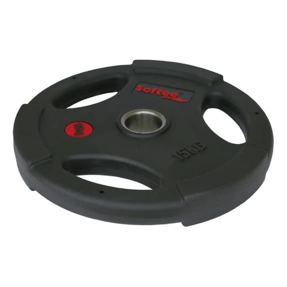 The Softee Urethane Olympic Disc has 3 grips for better handling when training. A metal ring provides better friction with the bar.