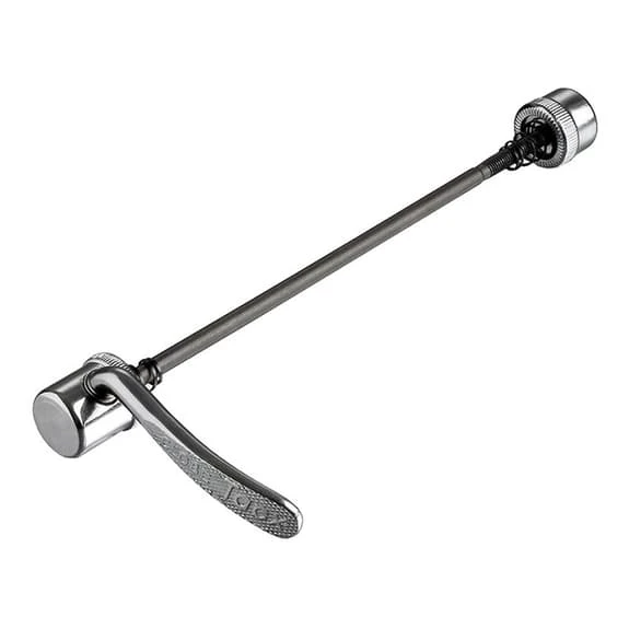Tacx quick release for the rear wheel for use with Tacx rollers. It is compatible with road bikes and MTB. The two sides of the closure are round to fit the roller supports.