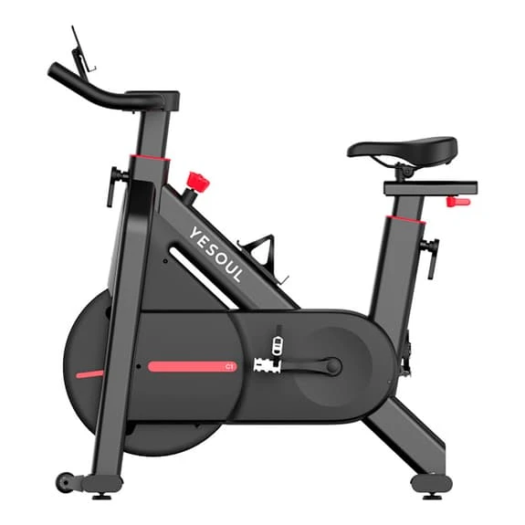 The Yesoul C1 indoor bike is made with a design that exudes minimalism and modernity thanks to its innovative lines and sophisticated black and red tones. Fully equipped to connect to Smartphone or Tablet and use them to check calories, distance, battery level, heart rate, etc. It also includes the possibility to share progress via social networks. This ultra-silent exercise bike offers high precision and attention to detail thanks to elements such as its adjustable leather seat, anti-slip safety pedals or its transport wheels. Its wide range of functionalities and levels (up to 100 resistance levels) make it an ideal exercise bike for both homes and fitness centers. The Yesoul C1 has a weight of 33kg and supports a maximum of 100kg.